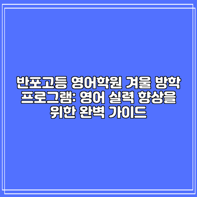 반포고등 영어학원 겨울 방학 프로그램: 영어 실력 향상을 위한 완벽 가이드