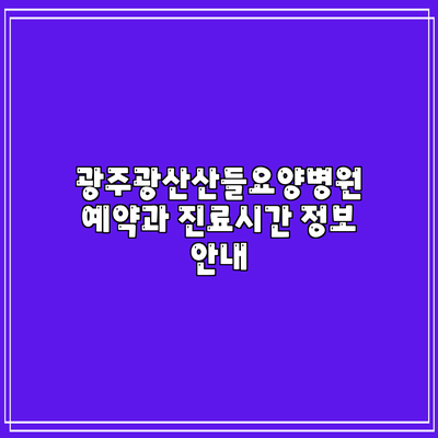 광주광산산들요양병원 예약과 진료시간 정보 안내
