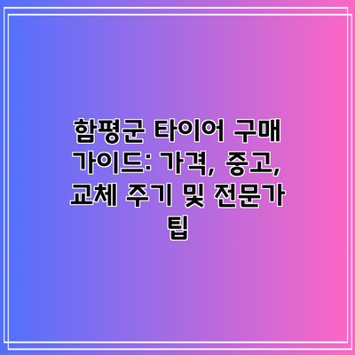 함평군 타이어 구매 가이드: 가격, 중고, 교체 주기 및 전문가 팁